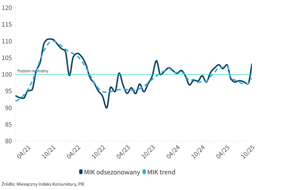 103,2 pkt osiągnął wskaźnik MIK w październiku 2025 roku. To oznacza, że nastroje przedsiębiorców są najlepsze od początku roku.
